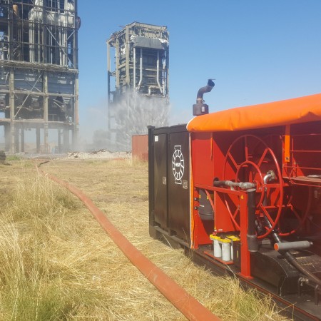 For the demolition of the Harculo power plant we provided pumps and custom-made water screens to prevent dust formation. Holland Special Pumps provided their well-known combi power packs with HSP-7 submersible pumps.